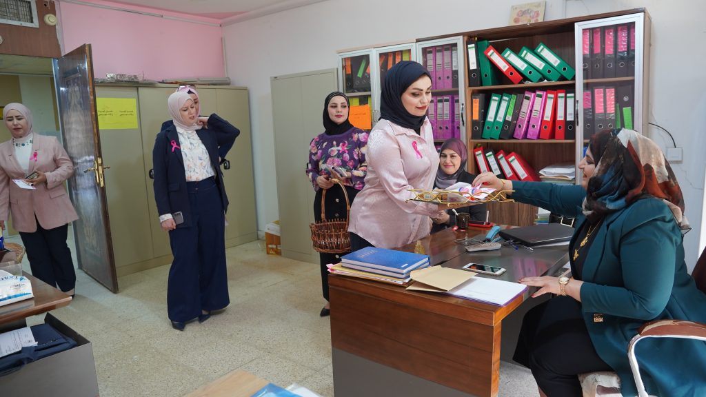 برعاية السيد رئيس جامعة ديالى الأستاذ الدكتور تحسين حسين مبارك المحترم، وبإشراف السيد عميد كلية القانون والعلوم السياسية الأستاذ الدكتور عبد الرزاق طلال جاسم السارة المحترم، أقام فريق العمل التطوعي المؤلف من كوادر الكلية وطلبتها، وبالتعاون مع شعبة الإعلام والاتصال الحكومي في الكلية، حملة تطوعية توعوية حول الوقاية من سرطان الثدي وأهمية الفحص المبكر.