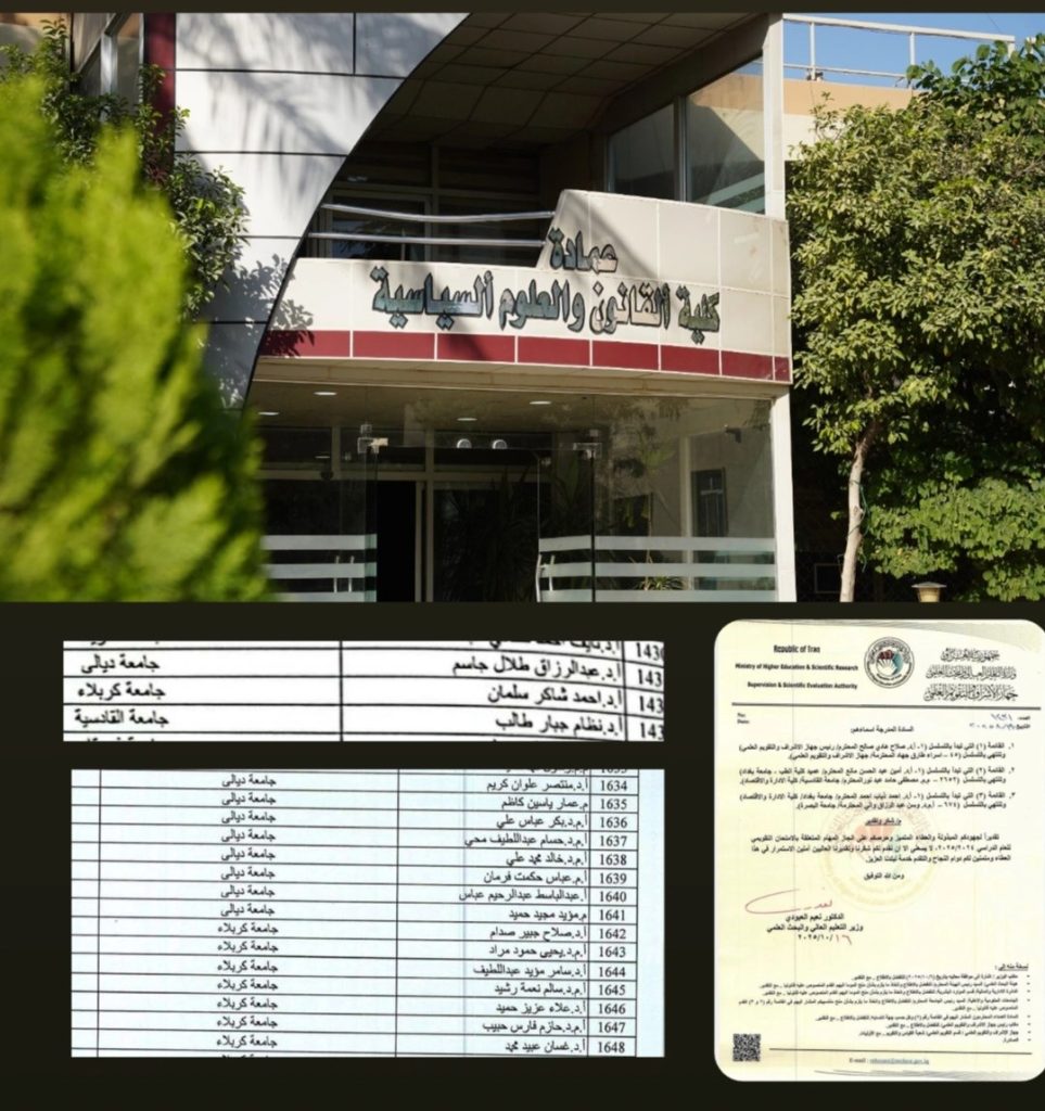 حصل السيد عميد كلية القانون والعلوم السياسية في جامعة ديالى، مدير المركز الامتحاني التقويمي رقم (10) الاستاذ الدكتور عبد الرزاق طلال جاسم السارة المحترم و أعضاء المركز الامتحاني والمشرفين على الامتحانات التقويمية