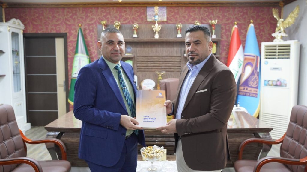 وعلى هامش الزيارة، أهدى السيد حامد الحمداني مدير قصر الثقافة والفنون نسخة من (موسوعة التراث الثقافي في محافظة ديالى) إلى السيد العميد، تثميناً لدور الكلية في دعم الأنشطة الثقافية، وتأكيداً على أهمية حفظ التراث المحلي ونقله إلى الأجيال القادمة.