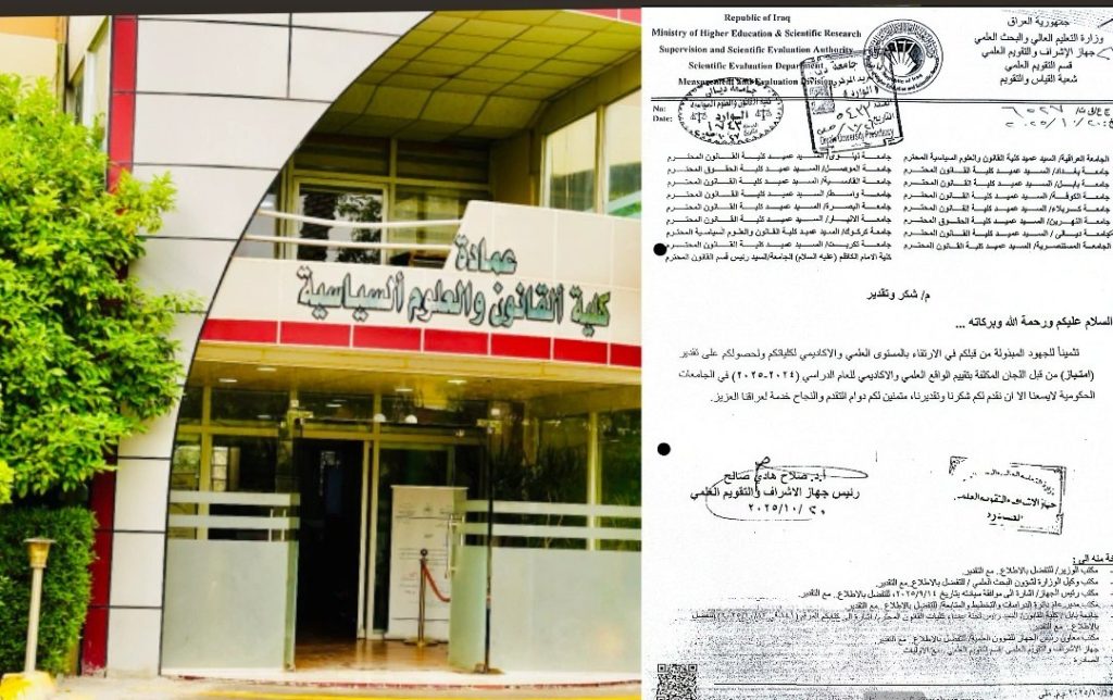 حصل قسم القانون في كلية القانون والعلوم السياسية – جامعة ديالى على تقدير امتياز من قبل اللجان المكلفة بتقييم الواقع العلمي والاكاديمي للعام الدراسي 2024 – 2025