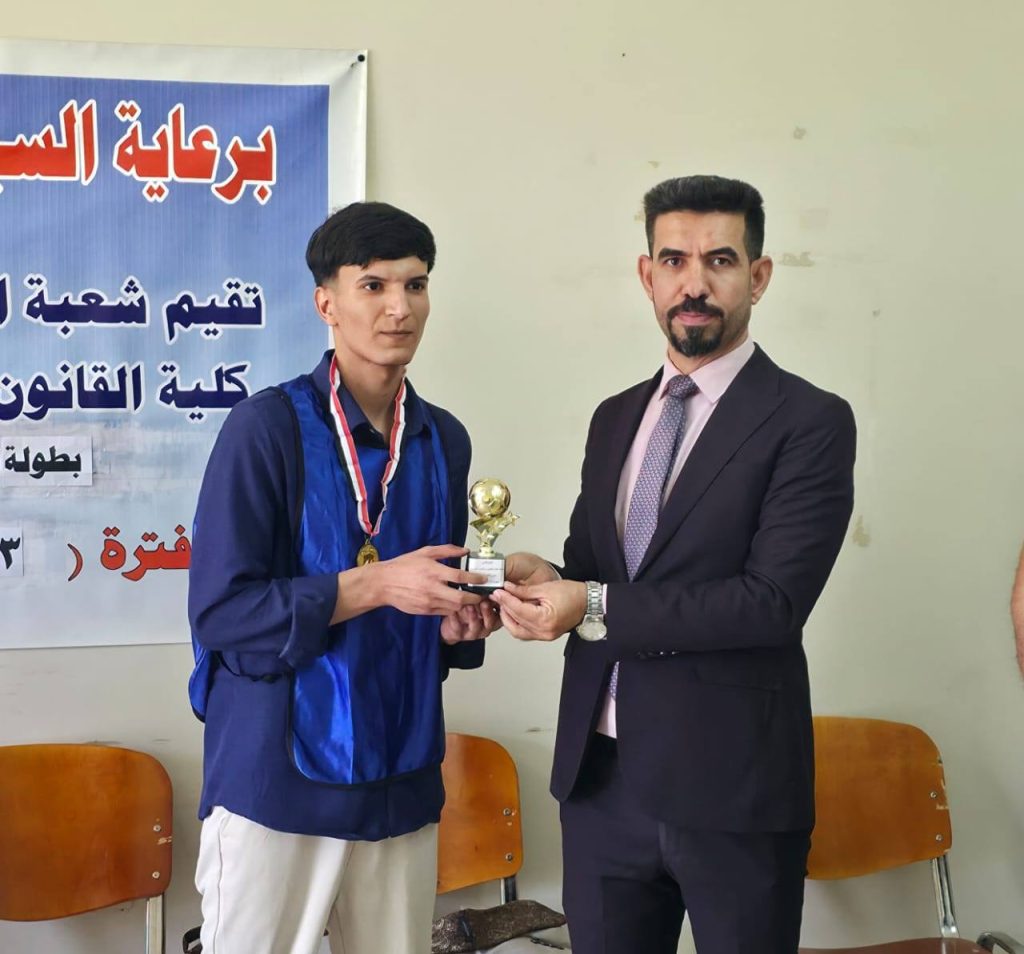 وفي ختام البطولة، قدّم السيد معاون العميد للشؤون الإدارية والمالية الأستاذ المساعد الدكتور محمد كاظم هاشم الميداليات والكؤوس للفائزين نيابةً عن السيد عميد الكلية، مثمناً جهود الطلبة المشاركين ودور شعبة النشاطات الطلابية في تنظيم الفعاليات الرياضية التي تسهم في تنمية روح المنافسة والتعاون بين الطلبة.