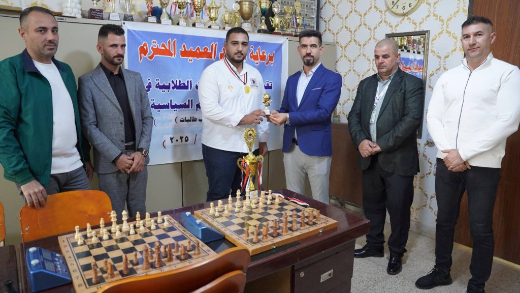 برعاية السيد عميد كلية القانون والعلوم السياسية الأستاذ الدكتور عبد الرزاق طلال جاسم السارة المحترم، اختتمت شعبة النشاطات الطلابية في الكلية بطولة الشطرنج الخاصة بالطلبة، والتي شهدت مشاركة مميزة وروحاً تنافسية عالية.