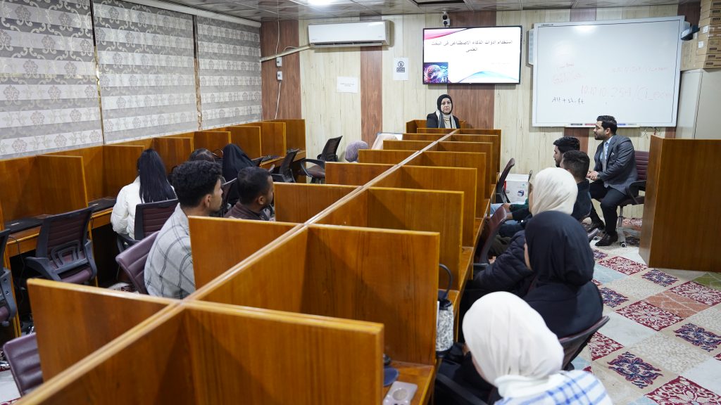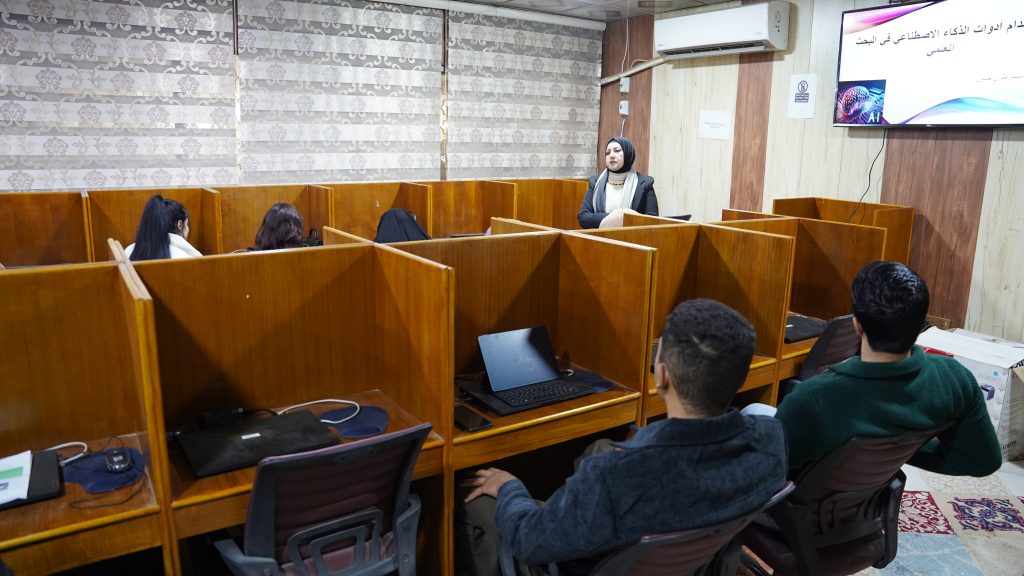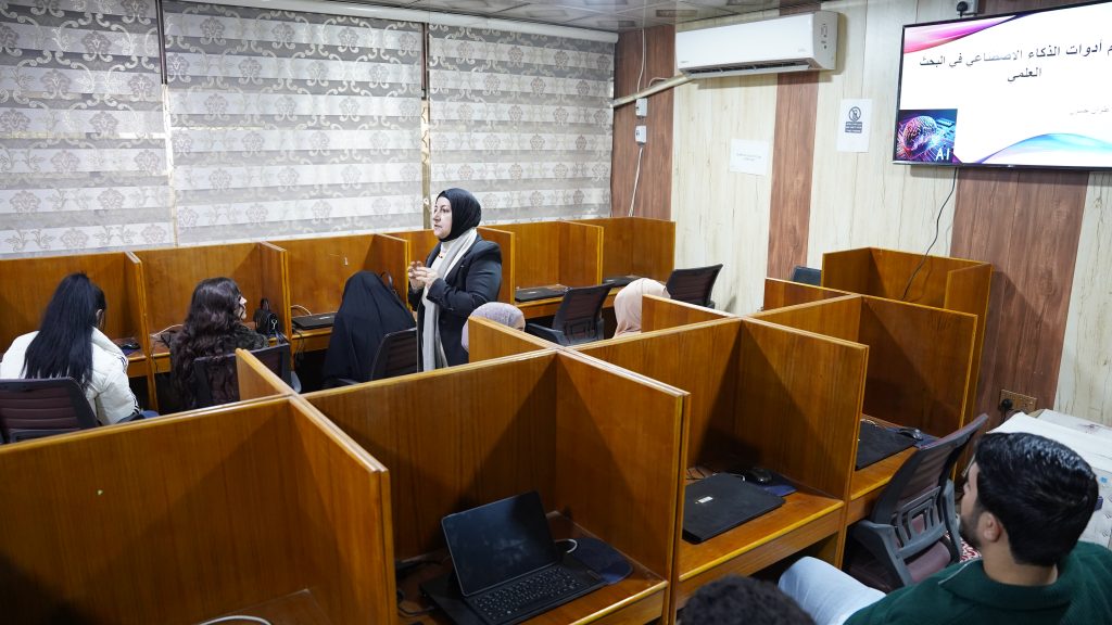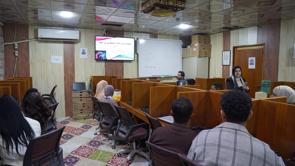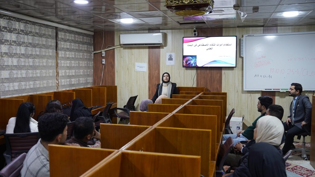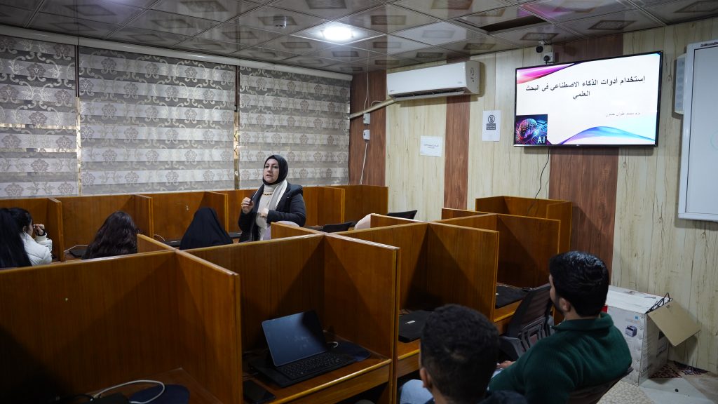 حاضر في الدورة المدرس المساعد ميسم علوان حسون، وهدفت إلى تعريف الطلبة بأدوات الذكاء الاصطناعي الحديثة، وبيان آليات توظيفها في البحث العلمي، فضلاً عن التعريف بأهم البرمجيات والتطبيقات الذكية التي تسهم في تطوير مهارات البحث الأكاديمي وتحسين جودة النتاج العلمي.