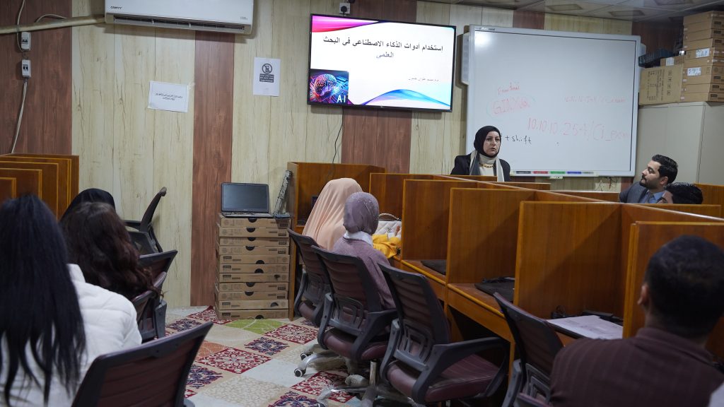 برعاية السيد رئيس جامعة ديالى الأستاذ الدكتور تحسين حسين مبارك المحترم، وبإشراف السيد عميد كلية القانون والعلوم السياسية الأستاذ الدكتور عبد الرزاق طلال جاسم السارة المحترم، أقامت شعبة تكنولوجيا المعلومات بالتعاون مع شعبة التعليم المستمر في الكلية دورة تدريبية بعنوان “استخدام أدوات الذكاء الاصطناعي في البحث العلمي”.