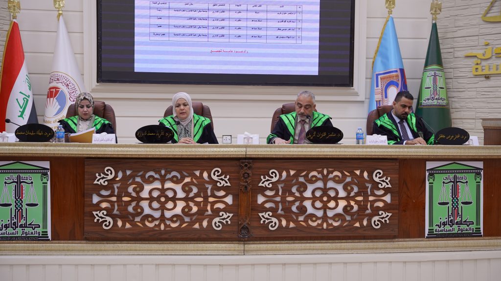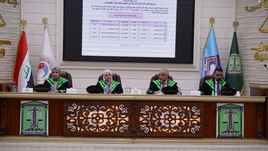 كلية القانون والعلوم السياسية تناقش في رسالة ماجستير تبسيط الإجراءات الادارية واثرها في حقوق الاجتماعية والاقتصادية