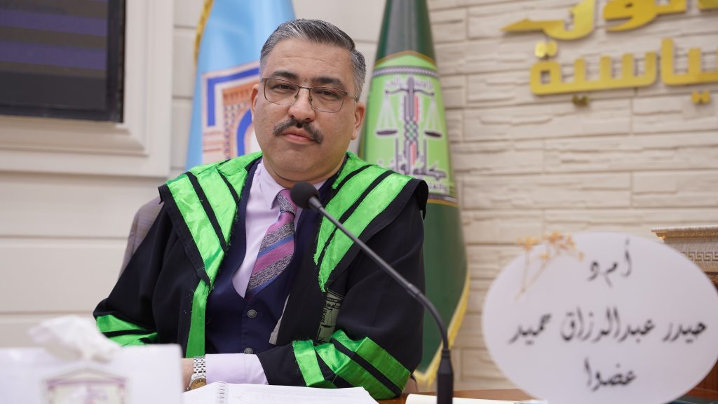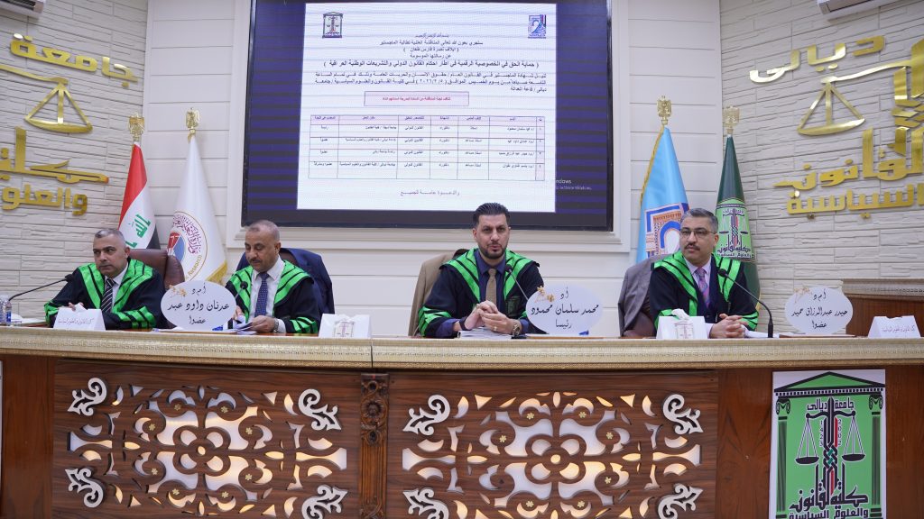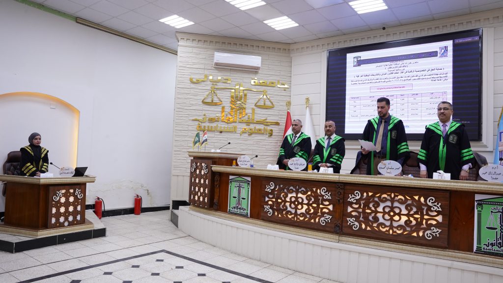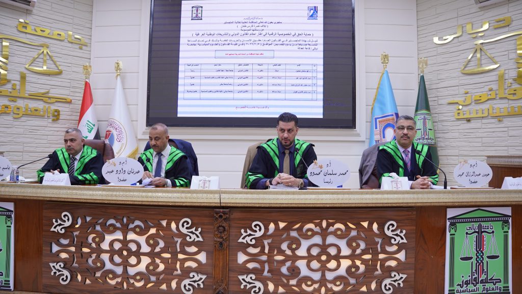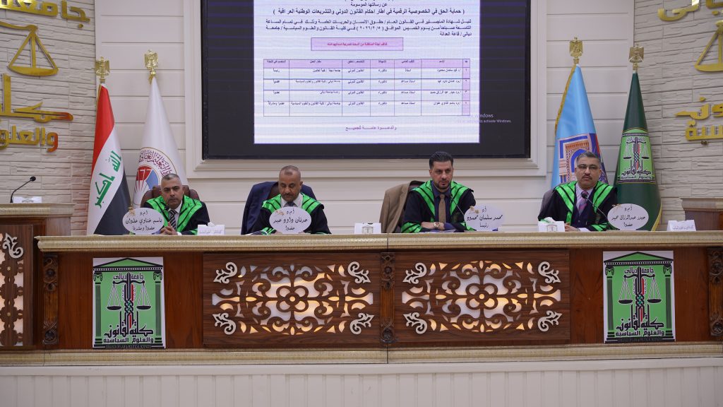كلية القانون والعلوم السياسية تناقش رسالة ماجستير في حماية الحق في الخصوصية الرقمية في اطار احكام القانون الدولي والتشريعات الوطنية العراقية.