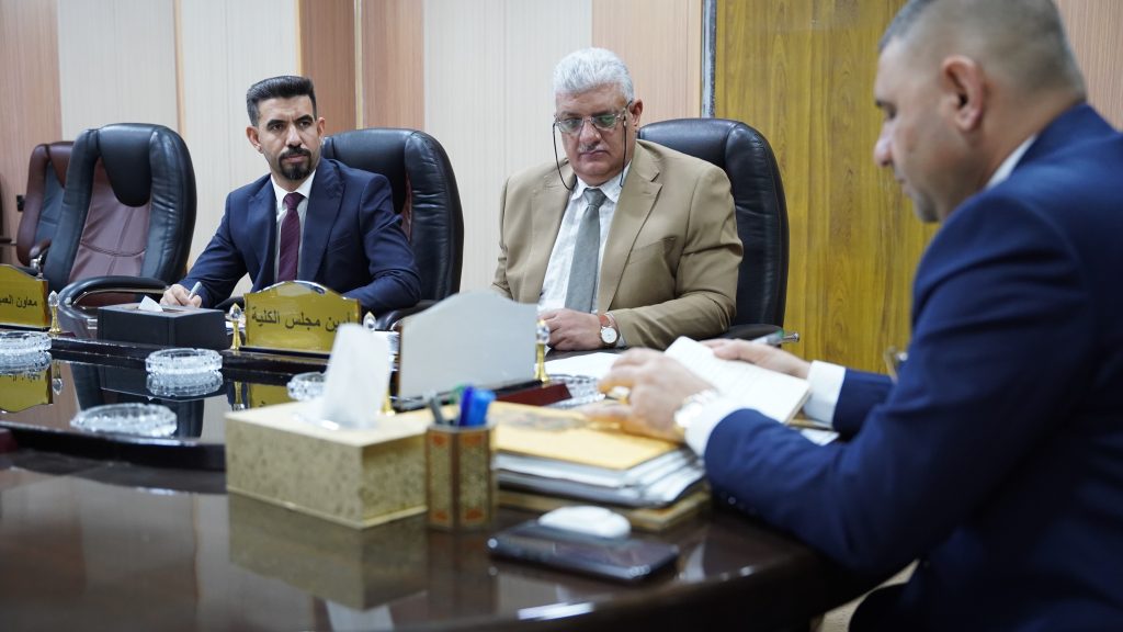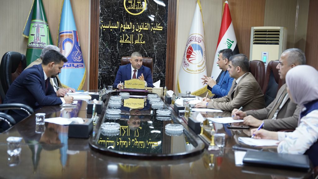 عقدَ مجلس كلية القانون والعلوم السياسية جلسته الاعتيادية الثالثة للعام الدراسي 2025–2026 صباح يوم الثلاثاء الموافق 4 تشرين الثاني 2025، برئاسة الأستاذ الدكتور عبد الرزاق طلال جاسم السارة المحترم، وبحضور السادة أعضاء المجلس.