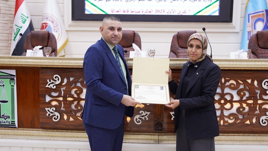 وفي ختام الندوة كرم السيد عميد الكلية الأستاذ الدكتور عبد الرزاق طلال جاسم السارة إلى السادة المحاضرين بكتاب شكر وتقدير ، مثمناً جهودهم في نشر ثقافة اللاعنف وتعزيز الوعي القانوني والإنساني في المجتمع، مؤكداً أن كلية القانون والعلوم السياسية ماضية في إقامة الفعاليات الفكرية والعلمية التي تسهم في ترسيخ مبادئ العدالة وحقوق الإنسان. كما حققت الندوة الهدف السادس عشر ( السلام والعدل والمؤسسات القوية ) من أهداف التنمية المستدامة السبعة عشر