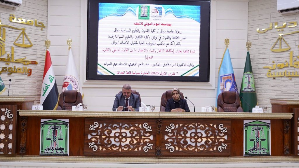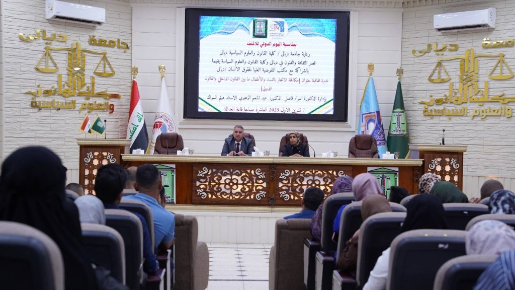 برعاية السيد رئيس جامعة ديالى الأستاذ الدكتور تحسين حسين مبارك المحترم، وبإشراف السيد عميد كلية القانون والعلوم السياسية الأستاذ الدكتور عبد الرزاق طلال جاسم السارة المحترم، وبالتعاون مع قصر الثقافة والفنون في ديالى وبالشراكة مع المفوضية العليا لحقوق الإنسان / مكتب ديالى، نظمت كلية القانون والعلوم السياسية ندوة ثقافية بعنوان: