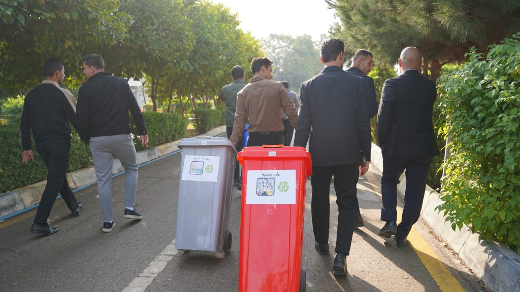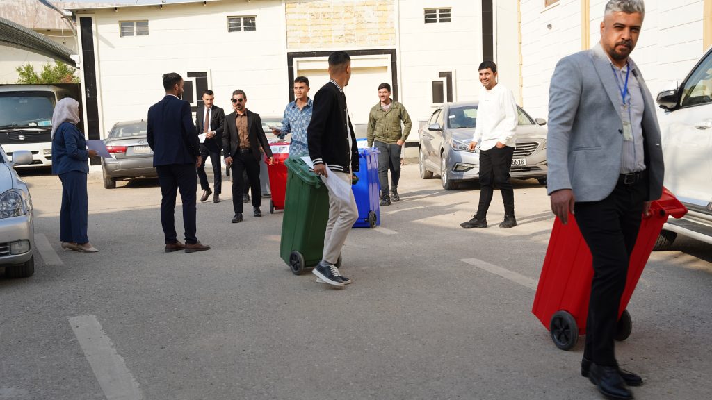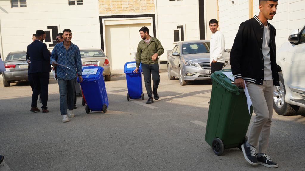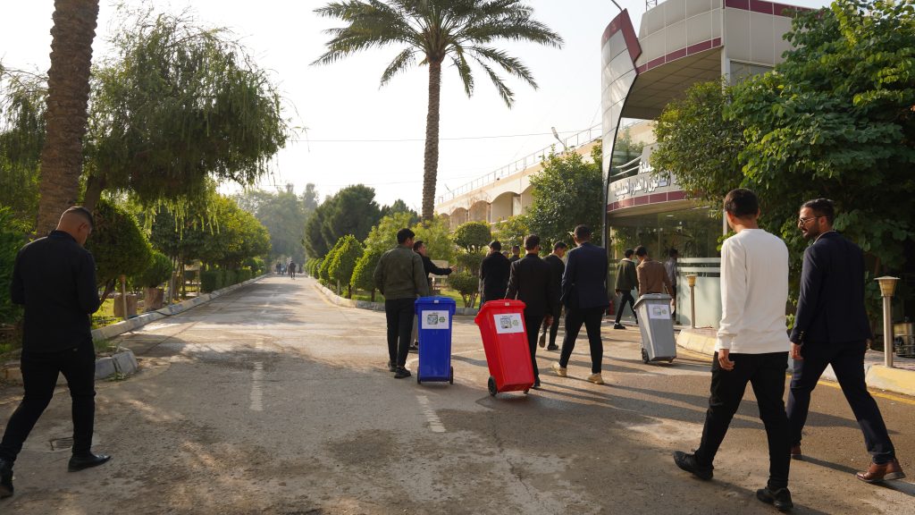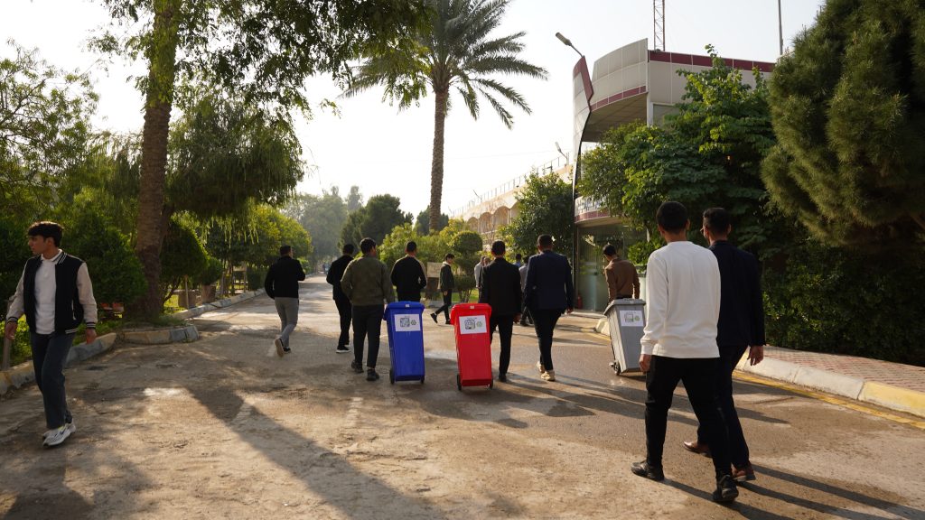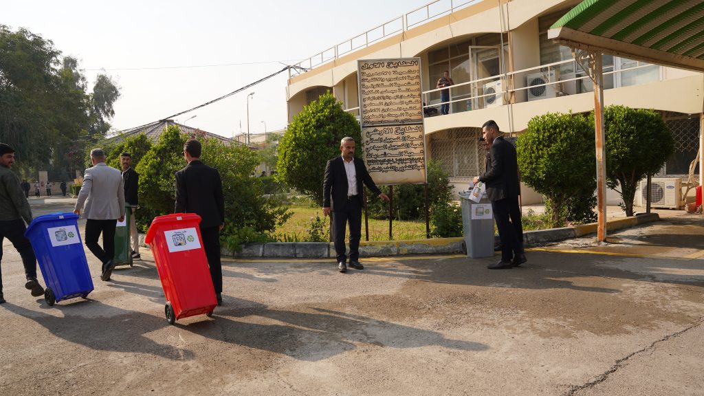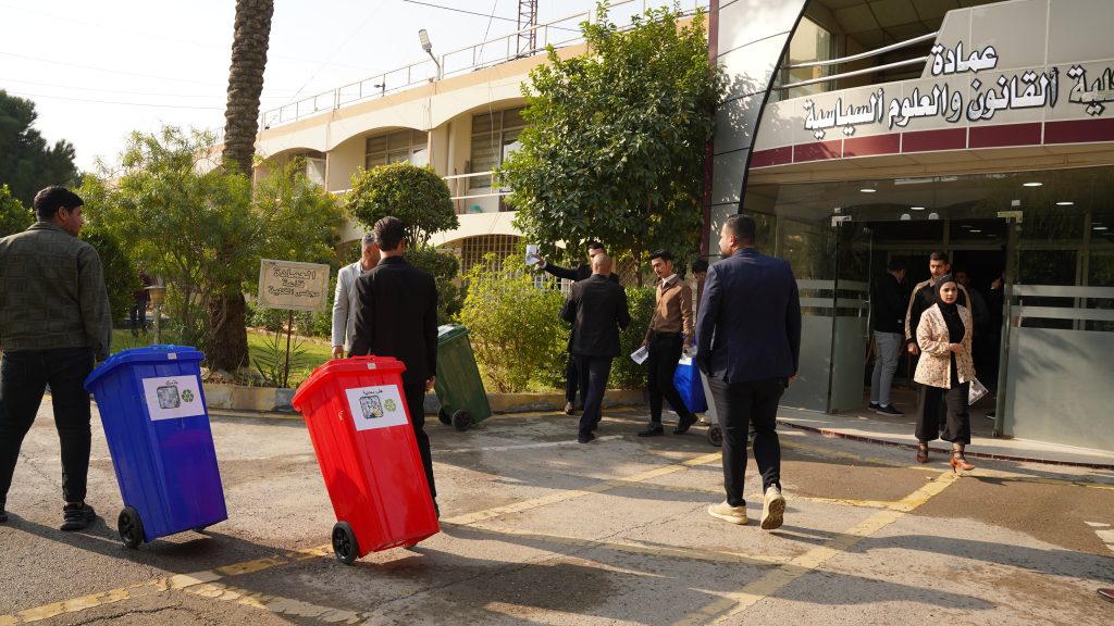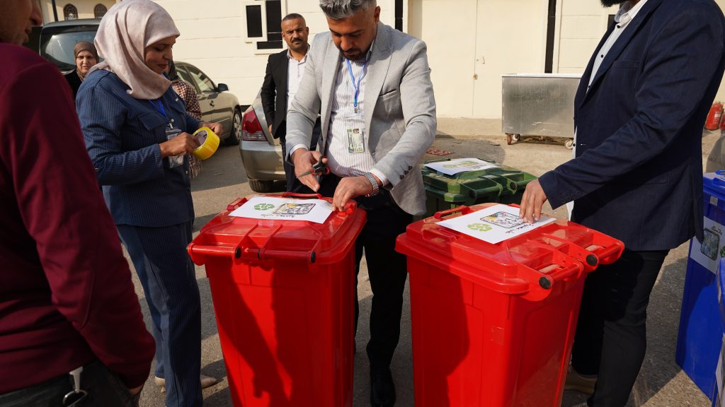 وقد أشرفت لجنة التنمية المستدامة وبالتعاون مع فريق العمل التطوعي المؤلف من كوادر الكلية وطلبتها على تنفيذ هذا النشاط، والذي تضمن تجهيز الكلية بحاويات كبيرة معدنية وأخرى بلاستيكية مخصّصة لفرز وتدوير النفايات، بهدف تعزيز ثقافة الاستدامة داخل الحرم الجامعي وتحسين البيئة الجامعية.