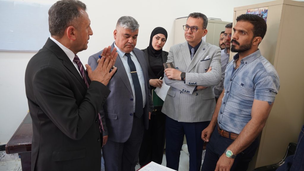 وكان في استقبال اللجنة معاون العميد للشؤون العلمية والدراسات العليا، الأستاذ الدكتور عماد مؤيد جاسم، حيث رافقهم في جولة تفقدية شملت الاطلاع على أعمال اللجان الامتحانية وسجلات الأساس الخاصة بطلبة الدراسات الأولية.