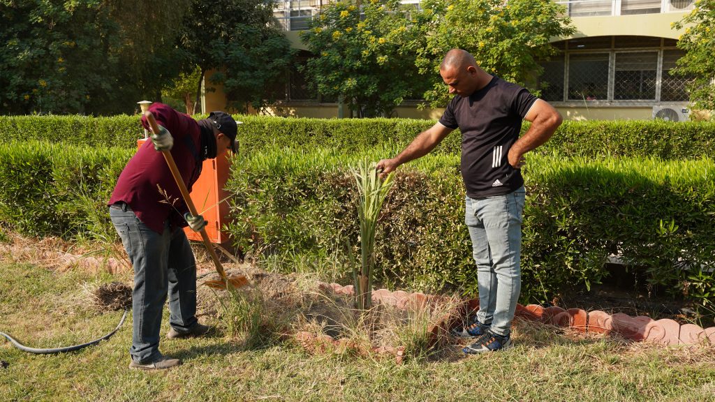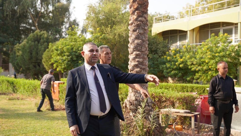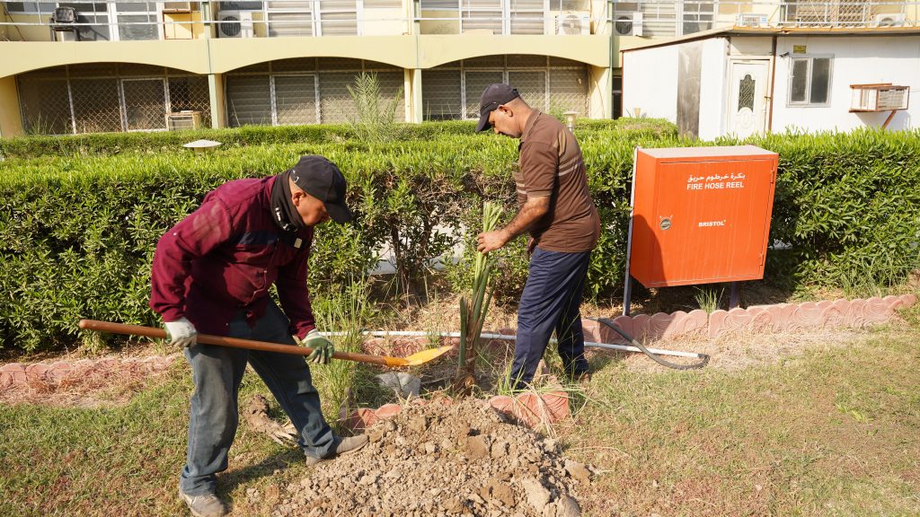 بإشراف ومتابعة السيد عميد كلية القانون والعلوم السياسية الأستاذ الدكتور عبد الرزاق طلال جاسم السارة المحترم، تواصل كوادر شعبة الصيانة والخدمات في الكلية تنفيذ حملاتٍ متواصلة للعناية بالمناطق الخضراء وتوسيعها داخل الحرم الجامعي.