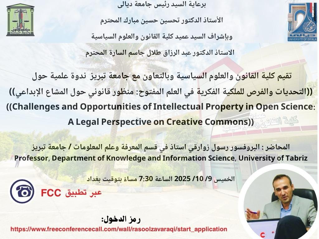 برعاية السيد رئيس جامعة ديالى الأستاذ الدكتور تحسين حسين مبارك المحترم، وبإشراف السيد عميد كلية القانون والعلوم السياسية الأستاذ الدكتور عبد الرزاق طلال جاسم السارة المحترم، أقامت شعبة التعليم المستمر بالتعاون مع قسم العلوم السياسية دورة تدريبية بعنوان: “دور الأمم …